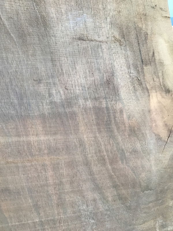 Locally milled and kiln dried. It's practically big enough to lay down on! The top deck is incredibly flat, so it would be relatively easy to cut out the recesses to make it a killer coffee table. There's a ton of figuring in this piece owing to the crotch feature. You won't regret this one!