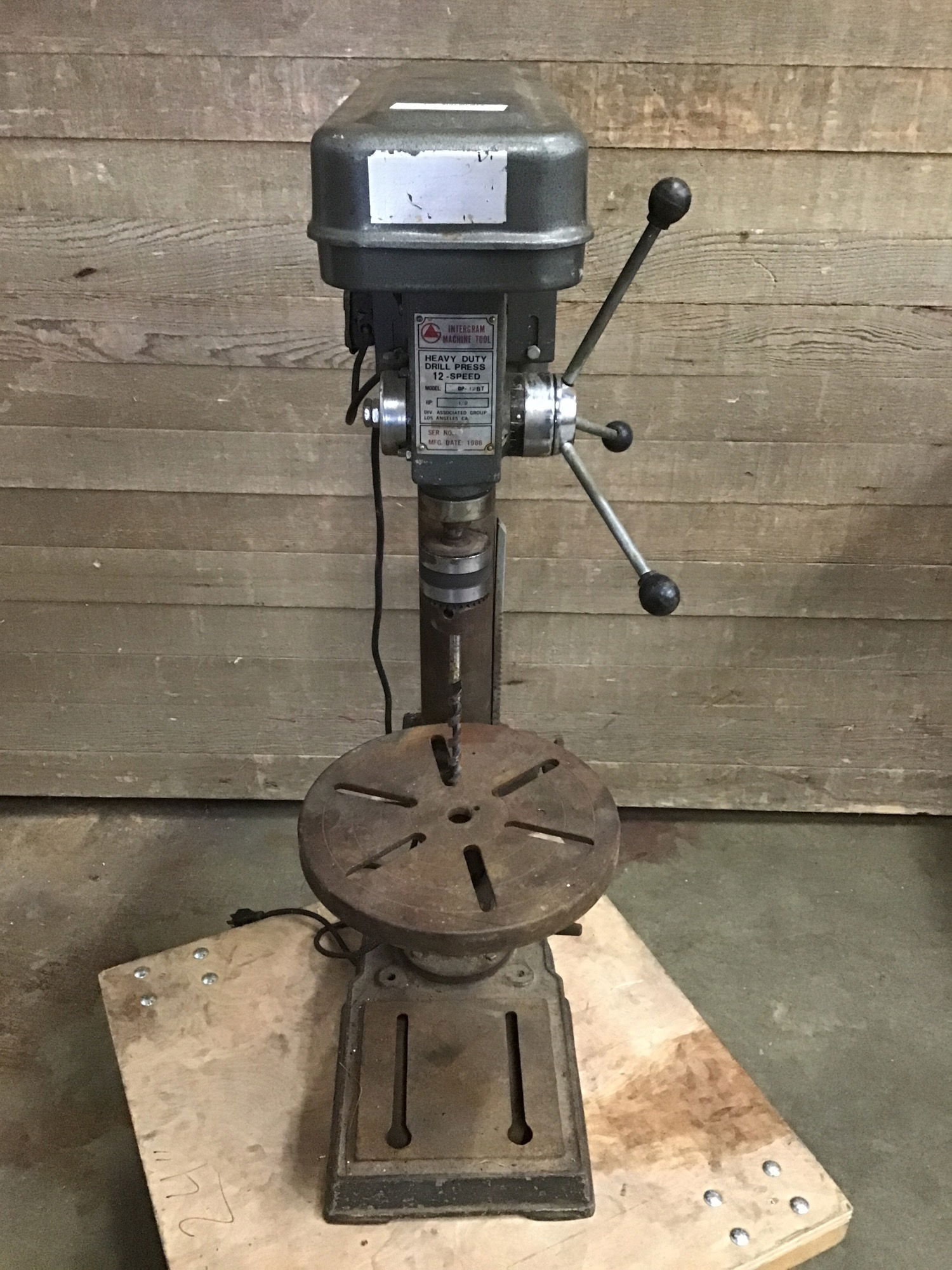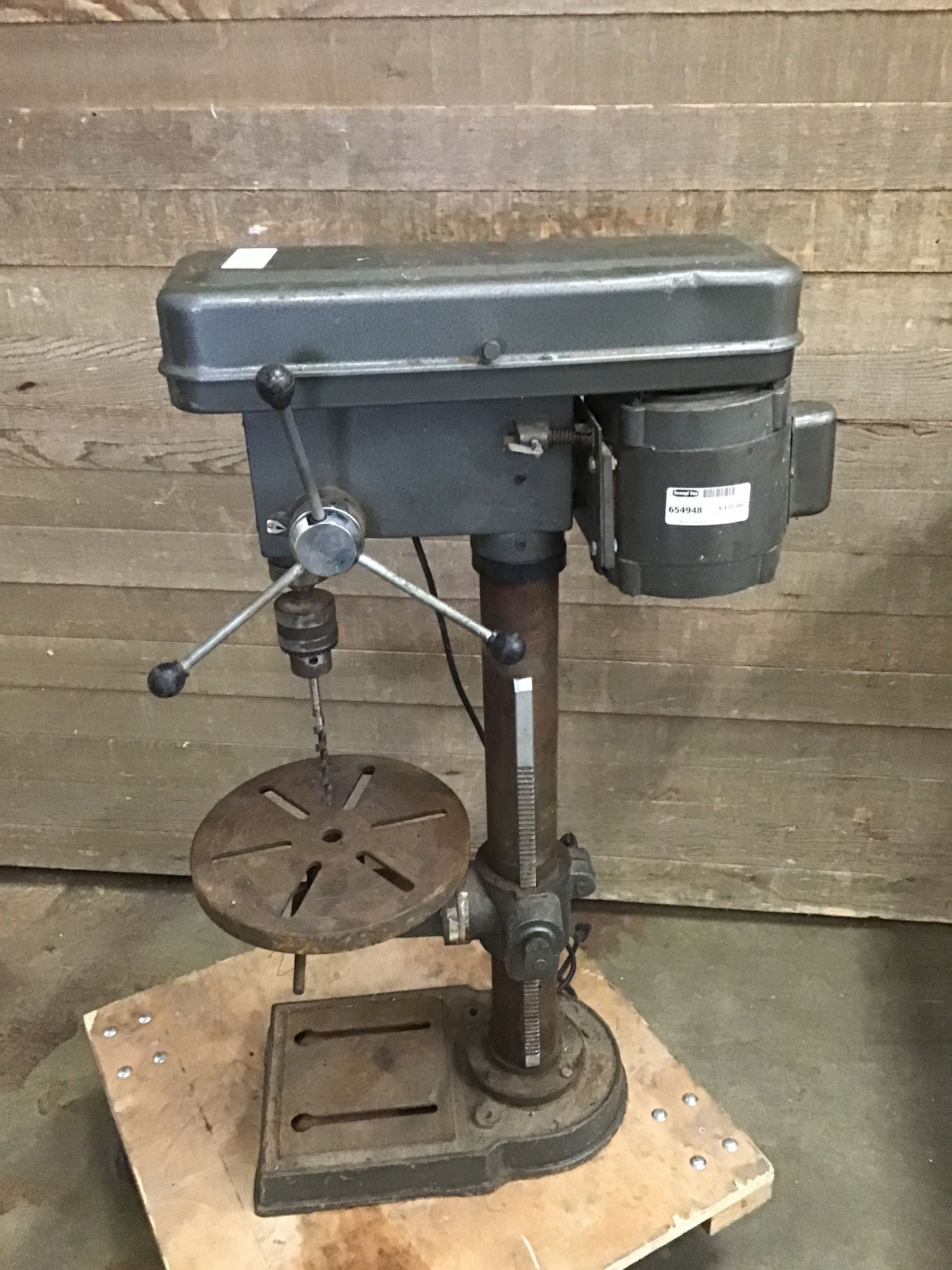 5 speed 1/2HP drill press. Missing the height adjuster arm but can be easily replaced or make a new one as its just a collar with a set screw. Motor ran fine when briefly tested.