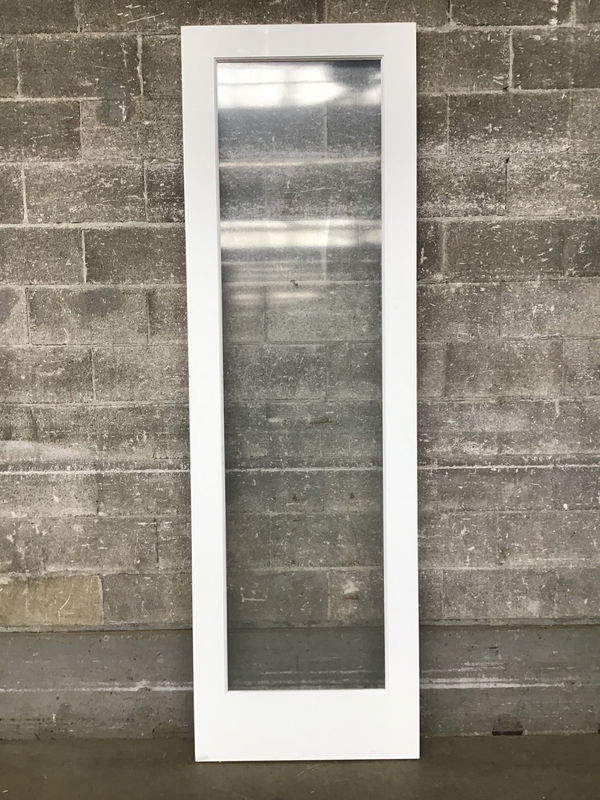 Brand new primed full lite interior door by Simpson. No hinge cuts, no holes bored.