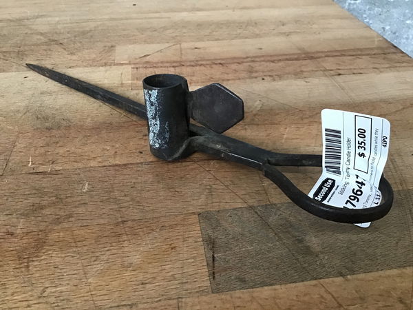 A Sticking Tommy, used by miners to hold candles while they delved deep into the earth for ores and minerals. It's got a sharp end that you would stab into the mine shaft wall or beams so the candle would light your area. A great addition to an enthusiast/historian's collection.