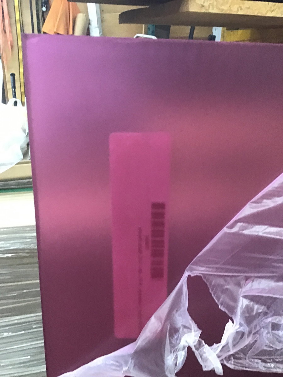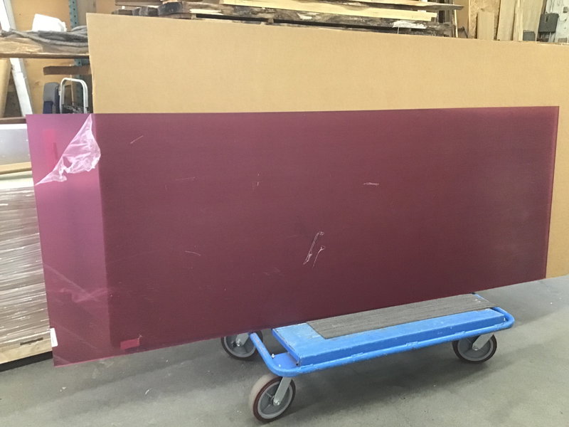 This high end 1/2” thick 36"x96" acrylic sheet in "Orchid+Spice Lumiclear" has a nice solid magenta color to it. It still has the plastic film on it. It’s a remnant from a commercial project, produced by Lumicor. This sheet retails for over $1000, but you can get it for a fraction of the cost. Photo may be representational.