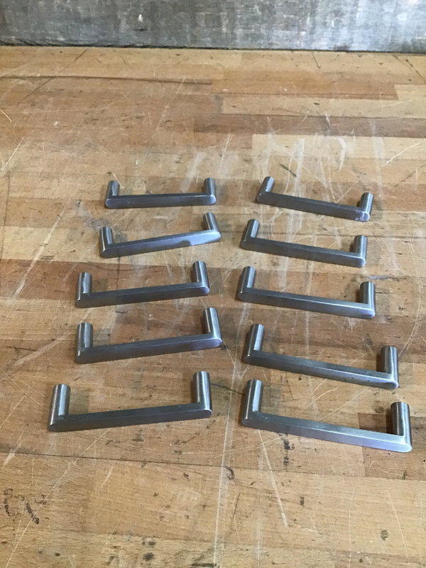 Good looking cabinet pulls in a stunning satin nickel finish. Appear to be made of brass. Photo may be representational.