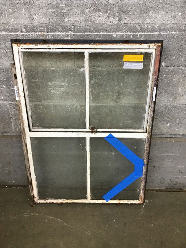 Cute steel framed window with an awning sash over a fixed one. It's missing the brass handle and one of the lites is cracked, but someone has managed to pry the top sash open. Perhaps you can finish what they started and work on restoring this. If not, though, you can certainly add it to your greenhouse exactly as is!