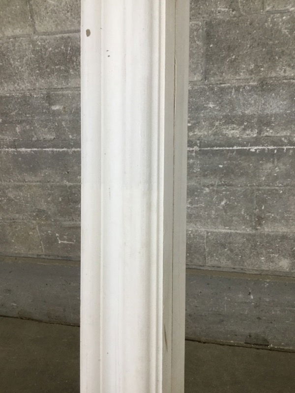 Pair of elegant exterior brick moulding pieces. One piece is 144.375" (a little over twelve feet) long, and the other is 141.5" long. Both are two inches thick, and 3.625" wide.