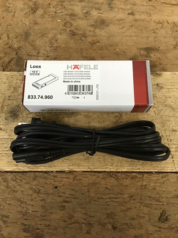 Never used Hafele 12V LED light driver that makes it so one can safely connect 12V DC power to a 120V AC power source. Included AC to DC adapter cord. See them selling here