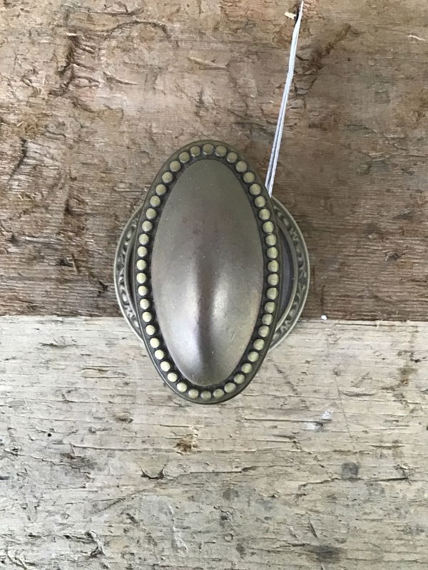 Solid brass dummy knob made by VCR, an Italian company. This has an attractive oval shape and nice detailing around the border.
