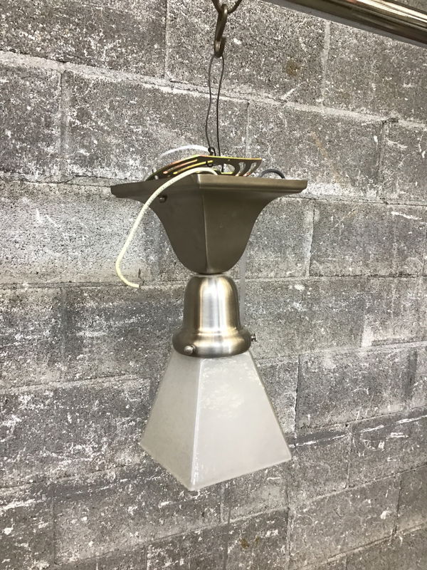 Cute little craftsman style single bulb Rejuvenation ceiling fixture with a nickel finish, clean and ready for more!