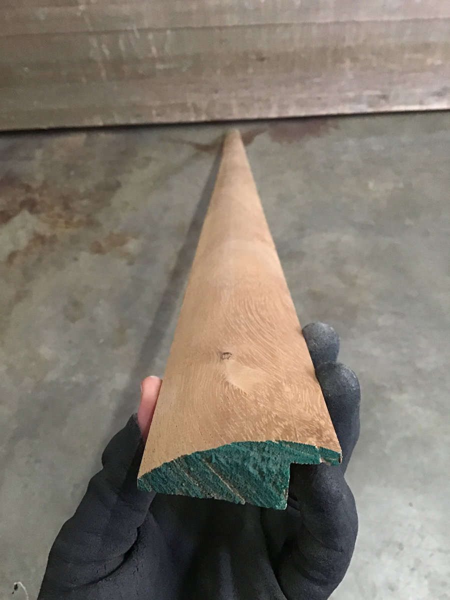 Unused/unfinished, 11/16" x 2" hickory Monkey Pod overlap reducer trim. 29 pieces that range from 7-8'. Round edge.