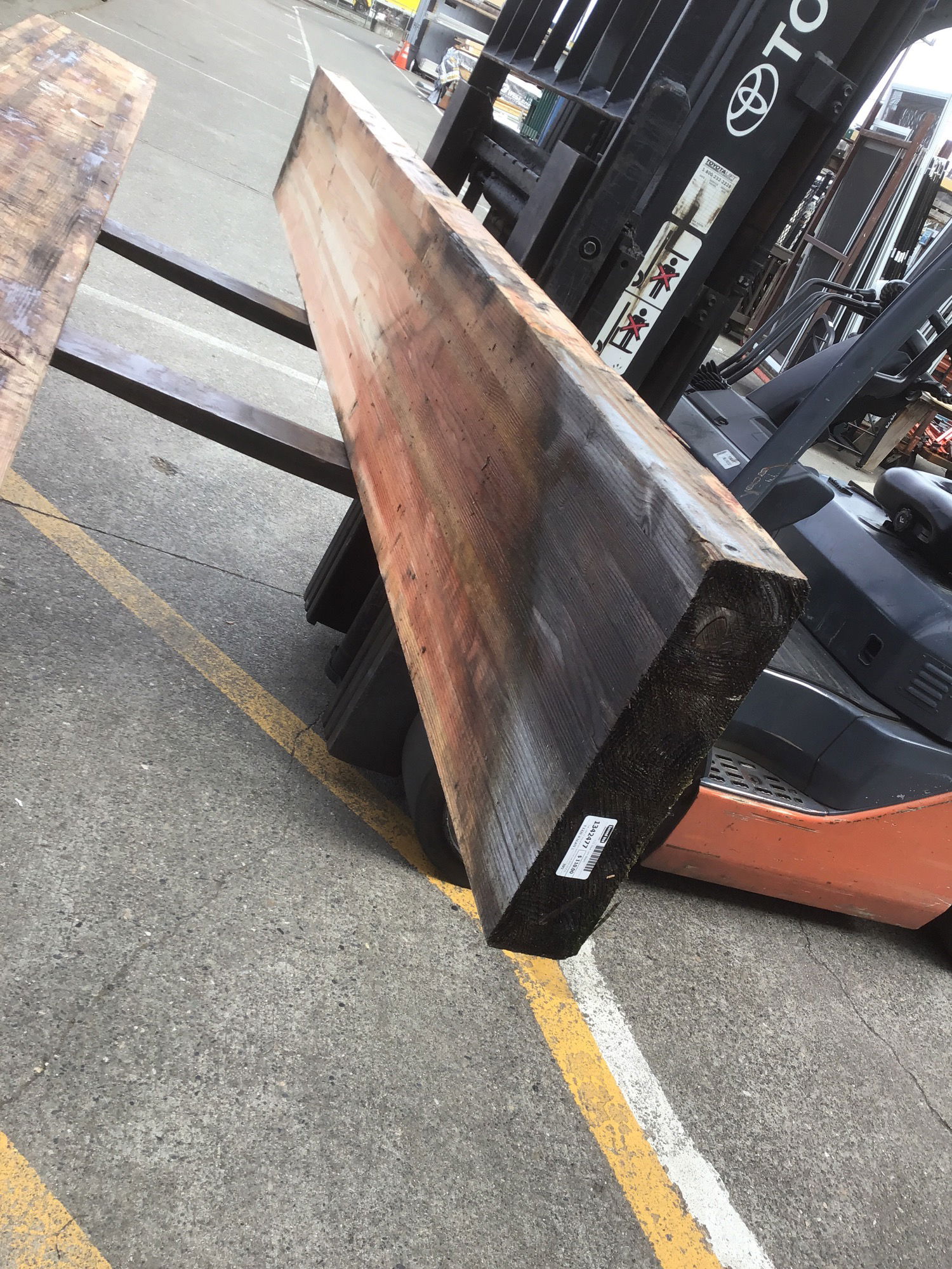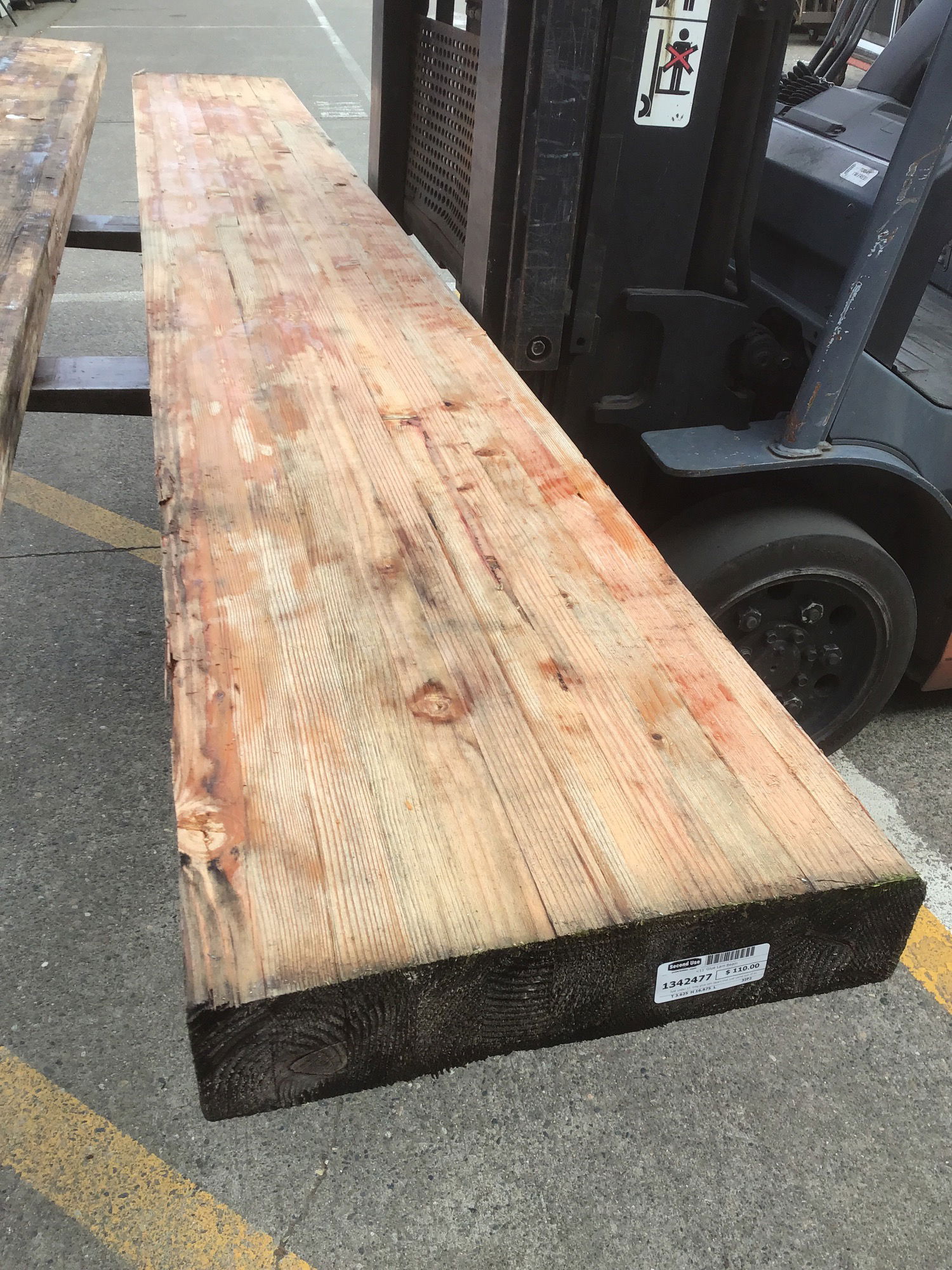 Just under 11' long glue lam beam that just came out of its wrapping. It's a little wet, but looks fine structurally. ~55 board feet