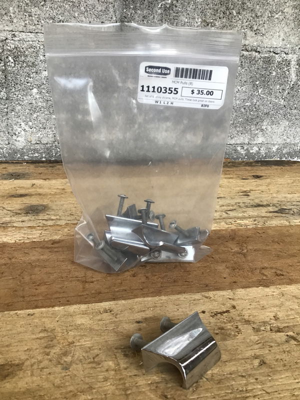 Set of 8, shiny chrome, MCM pulls. These look great on doors or drawers!