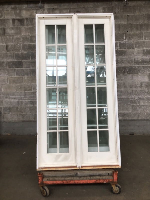 Made by Kolbe, this large 2020 fixed window was likely a side lite in its previous life. It features 24 panes, an aluminum clad exterior, and painted mahogany interior. Some wear from previous installation. Photos may be representational.
