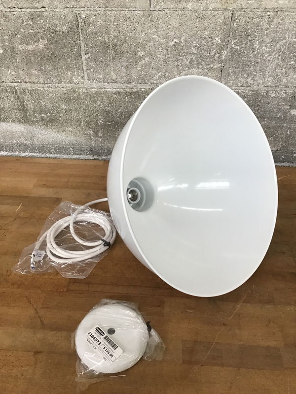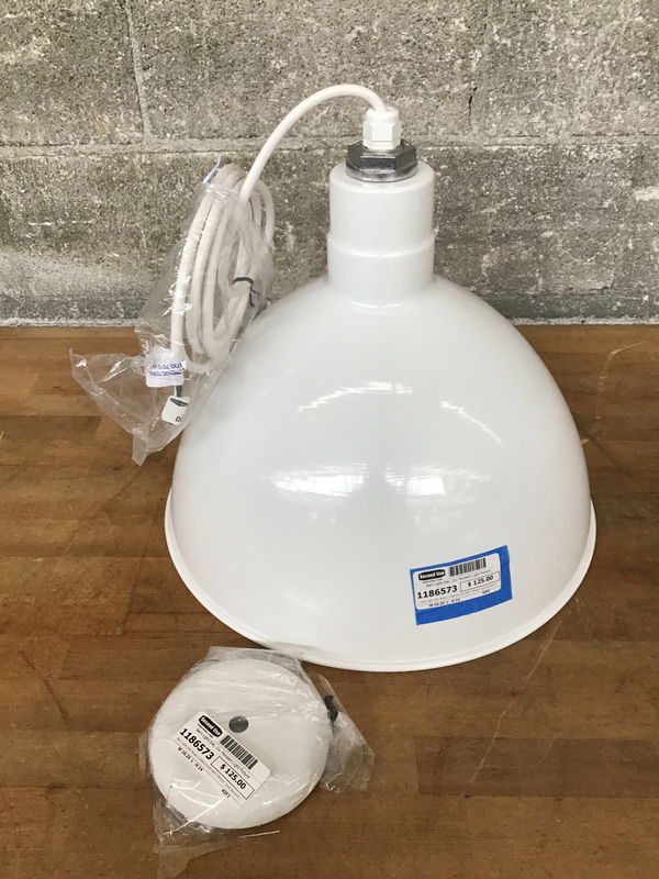 Barn Light USA Model C-DBW16-200-SWH "Wilcox" cord pendant light with a white finish. This one just uses a normal, Type A bulb of your choice. No ballast or driver to worry about, and when the bulb burns out you can change it. These sell for $220 each on the Barn Light Electric Company website. Photo may be representational.