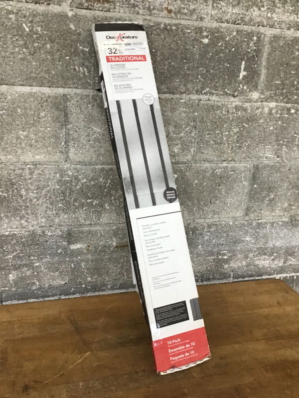 Pack of 10 bronze finish aluminum balusters with screws by Deckorators. These came to us new in the box and retail online for upwards of $60.