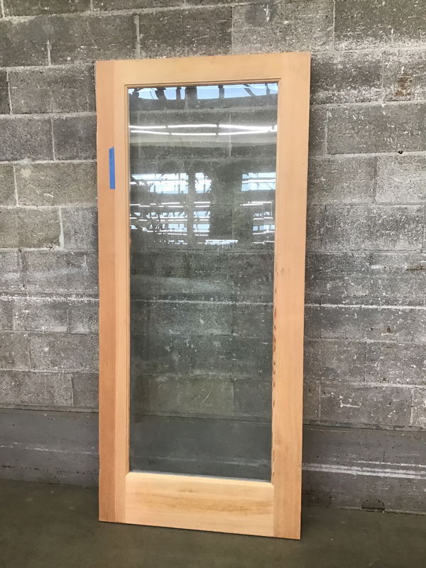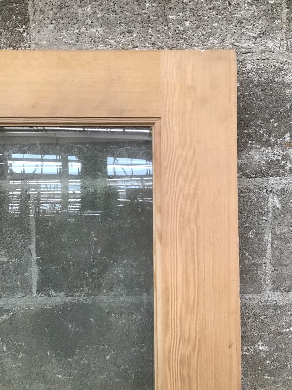 Like new, never installed raw fir exterior French door. Undrilled for knobs. Looks like someone glued something wooden onto one style and then ripped it off. Little time with a sander should fix it right up.