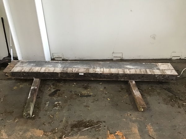 Salvaged from FX McRory building in on Occidental and Jackson in Pioneer Square. Finished construction in 1906, was built during reconstruction of the area after the 1889 Great Seattle Fire. Originally named The Manufacturers Exchange Building it later housed FX McRory's Steak and Oyster House for 40 years. Old growth beam, some bolt holes.
