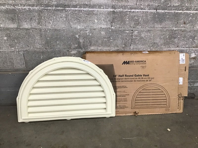 New in box, 34" Half Round Gable Vent made by Mid-America Siding Components, which makes me think it's a vinyl product. Retails for $80. Photo may be representational.