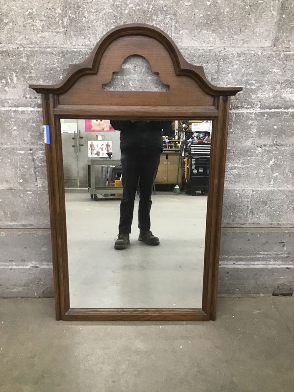 Big-ish mirror in a wooden frame with a classy arched top. It seems like the kind that would like nice in an enryway.