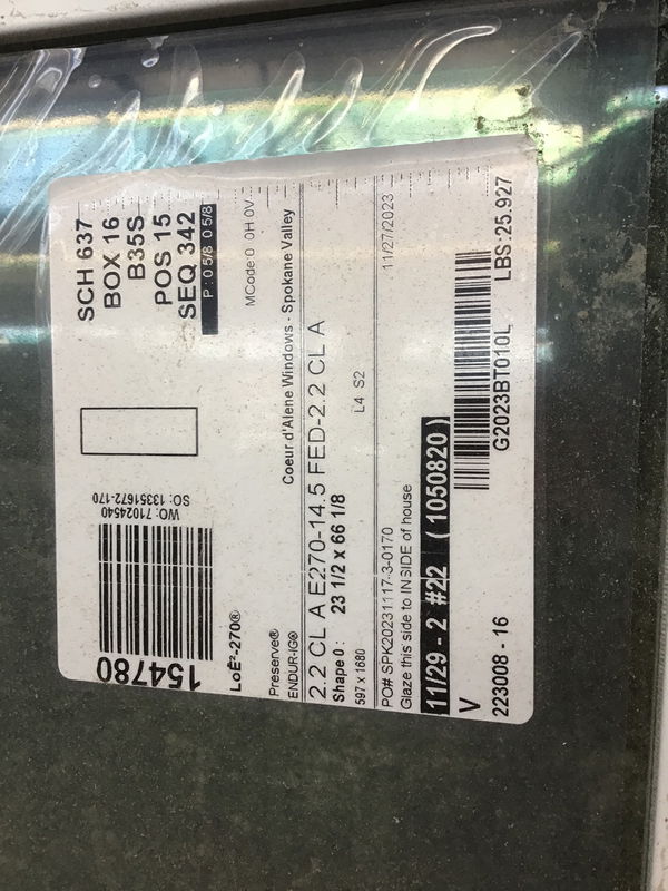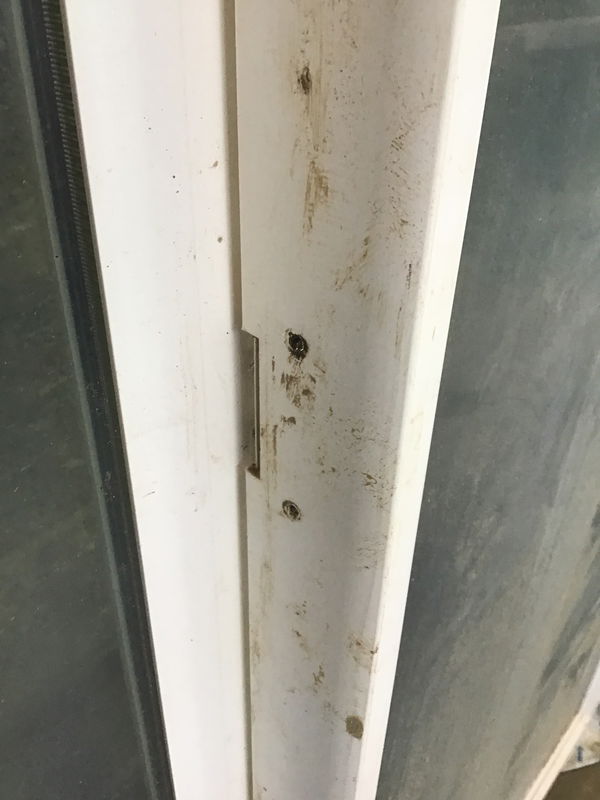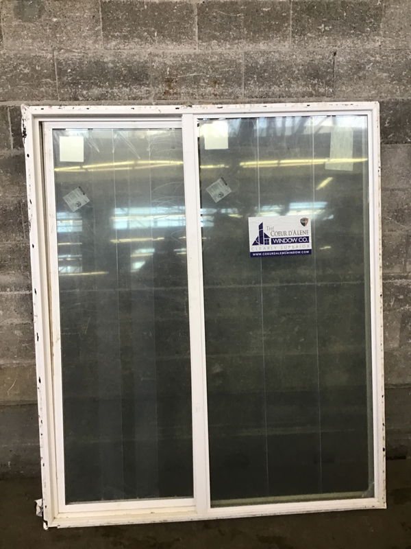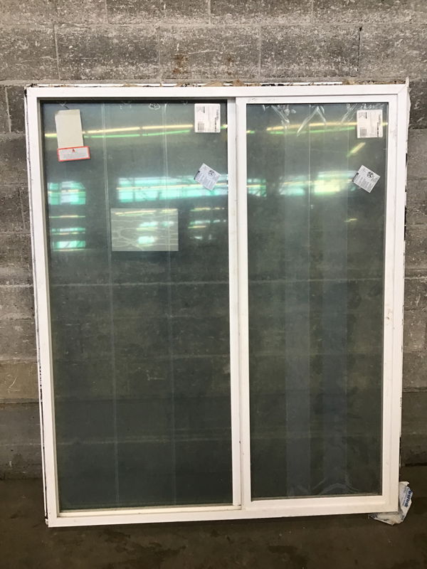 The latch is missing off this ca. 2023 white vinyl sliding window. No energy tag attached. Price reflects condition.