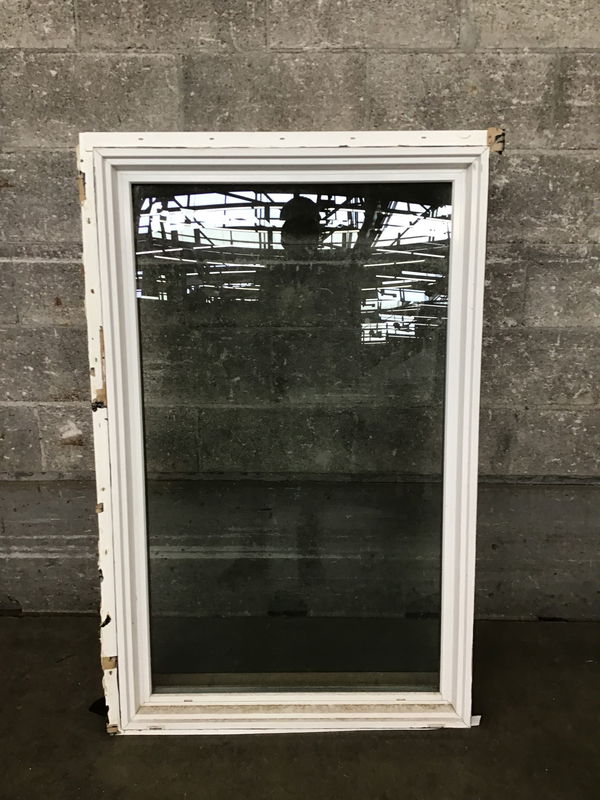 Ca. 2000 Milgard white fiberglass clad exterior, stained fir interior fixed window. Item may have cosmetic damage. Photo may be representational.