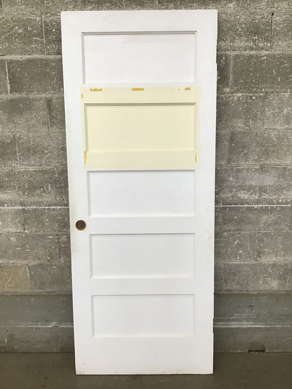 Vintage five recessed panel interior Fir door with a coat of paint.