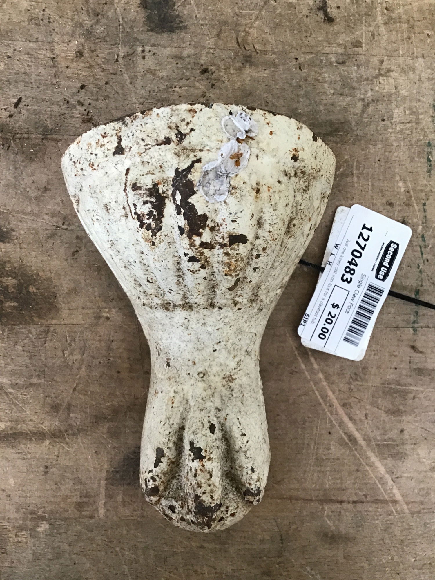 Just one lonely cast iron foot for a clawfoot tub.