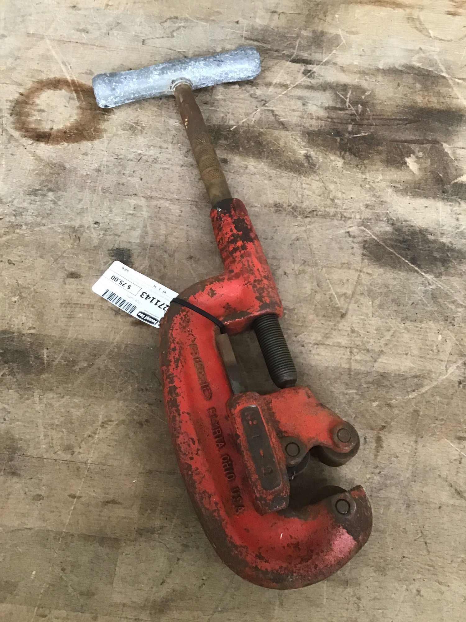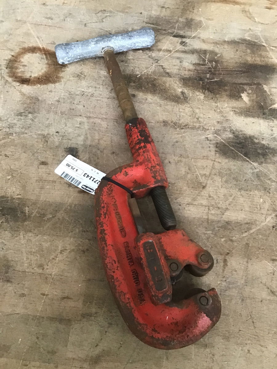 A heavy duty Ridgid No. 2A pipe cutter that fits pipes from 1/6" to 2" in diameter. Retails new for about $200.