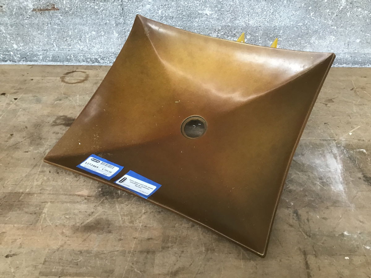 This Bronze Sink Basin by Stone Forest weighs in at a smacking 25 lbs. Sand cast Bronze, requires drain use 9054D Grid Drain, do not use pop-up drains, 2003, Model Bronze Zen Vessel CP-09.