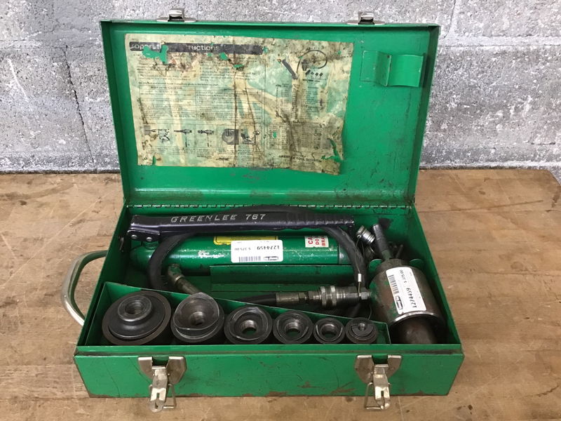 Greenlee hydraulic punch set with 8 punch sizes. Kits like this are very expensive, ranging from $1100 to $2600. Get yourself a deal with this one.