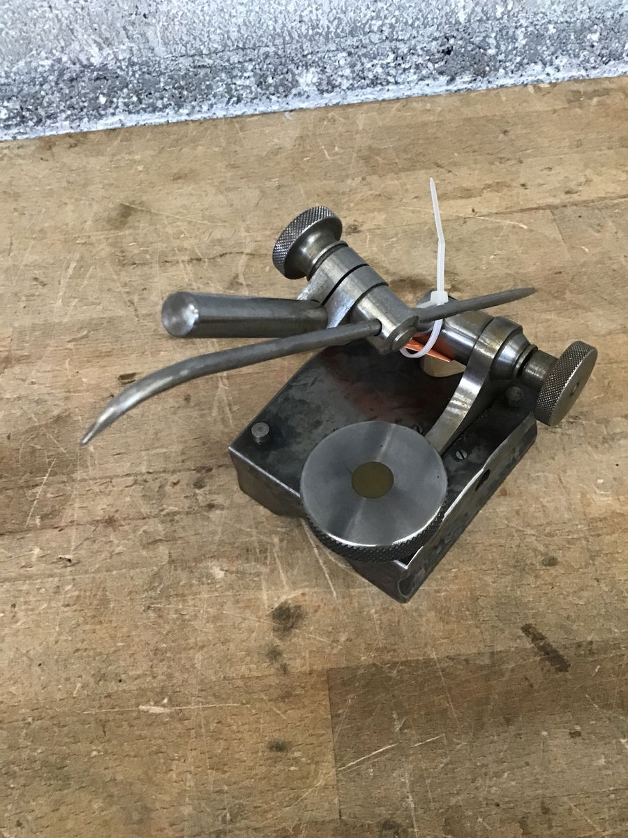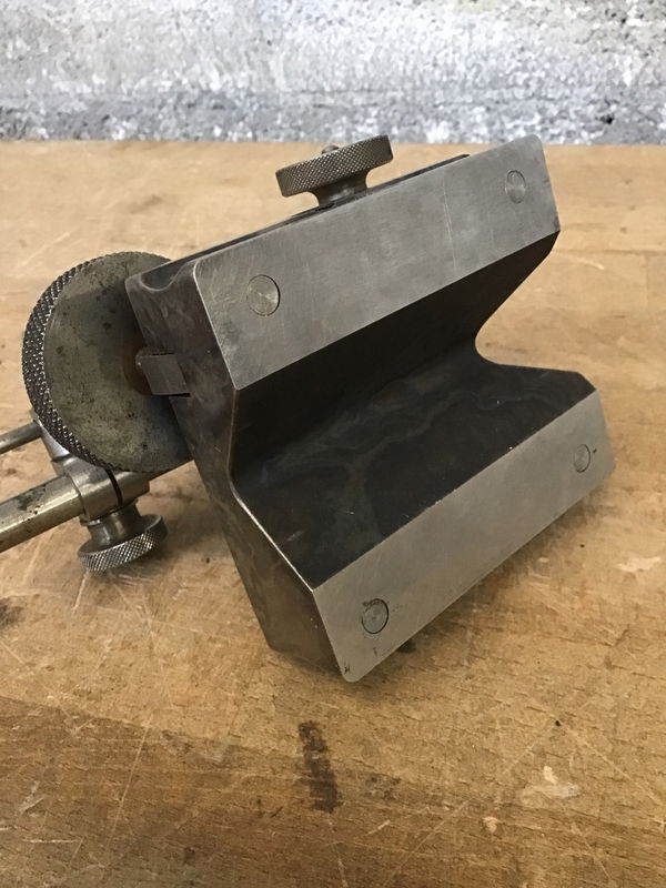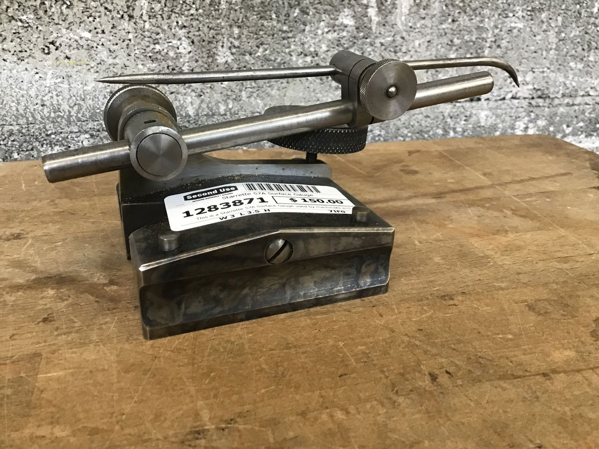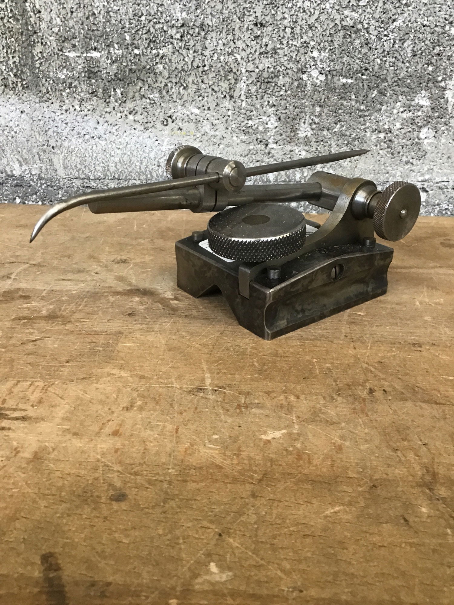 This is a Surface Gauge used by machinists and toolmakers for scribing lines, transferring measurements, and probing surfaces in inspection work. This particular one is in amazing shape and looks just like the Starrett 57A, but I can't find a name on it. It feels really well made.
