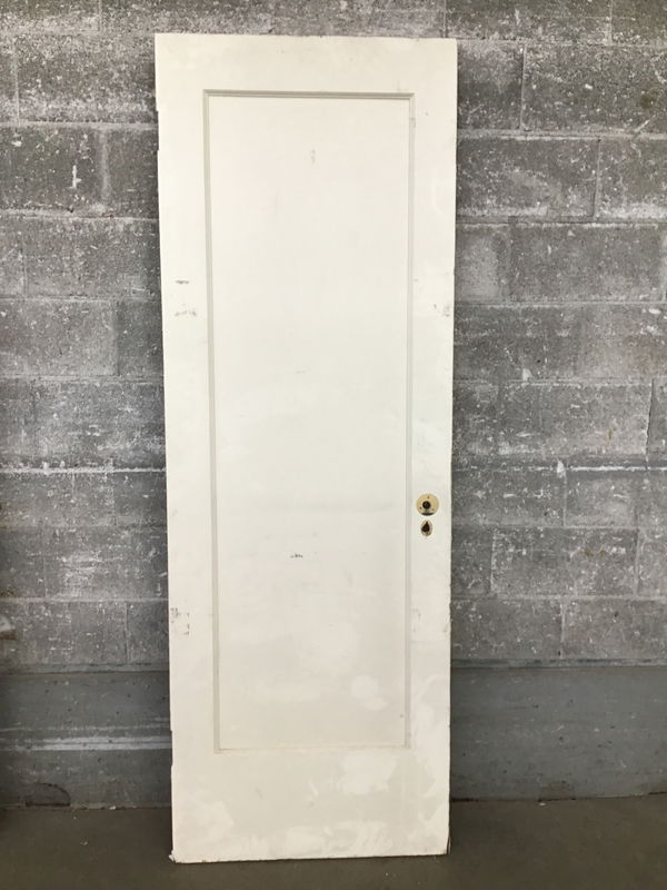 This interior recessed single panel door has certainly seen a few paint jobs! But with a little elbow grease, could easily see a few more. Has some cosmetic wear.