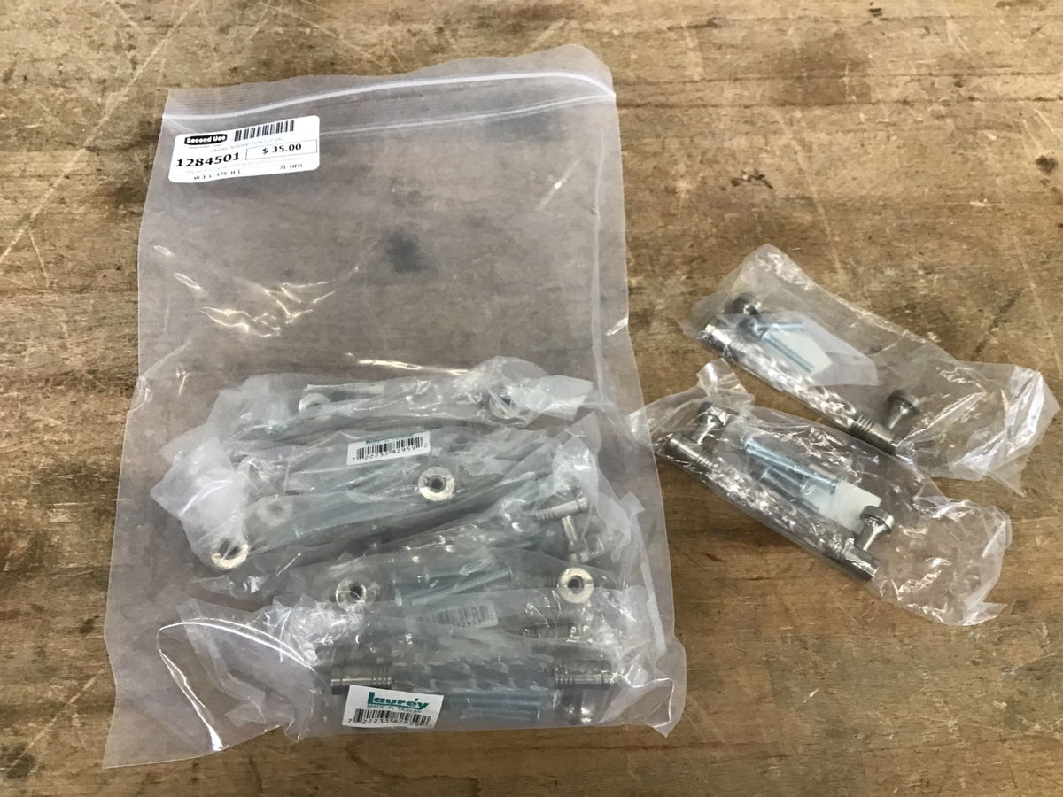 New set of 12 Laurey brand acrylic pulls with a polished chrome finish on the ends. Machine screws included.