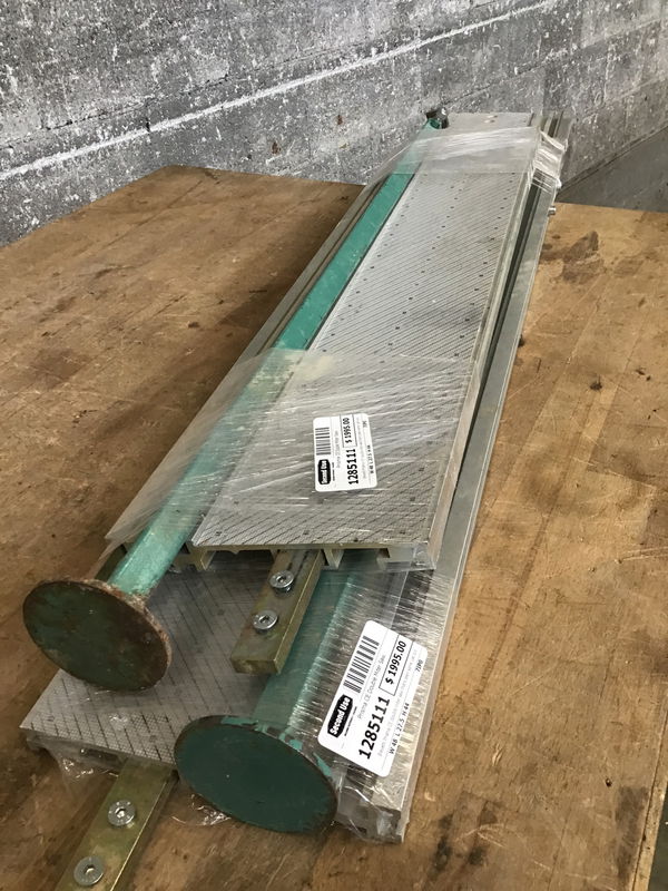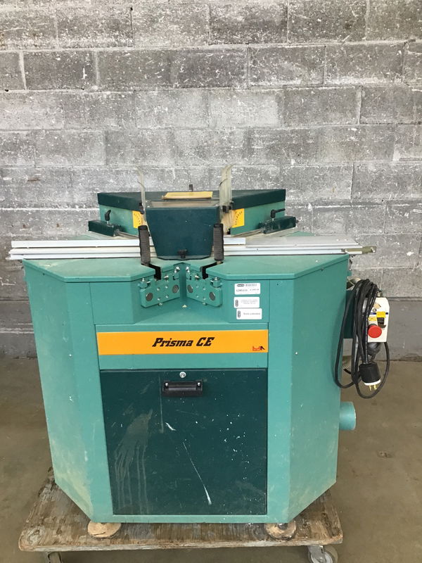 Brevetti Prisma CE double miter saw that's seen some use but still has tons of life left in it. If you're in the market for one of these, you know they cost thousands of dollars new. Cuts molding up to 4 3/4" wide by 2 3/4" high, includes extension arms, blades and other accessories. Sold untested because we do not have the right kind of adapter for the 20A/240V plug.