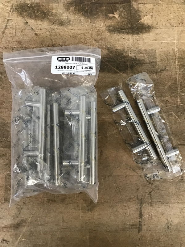 14 new and unopened Ravinte brand cabinet pulls with a brushed nickel finish. Centers measure 3" apart and total width is 5".