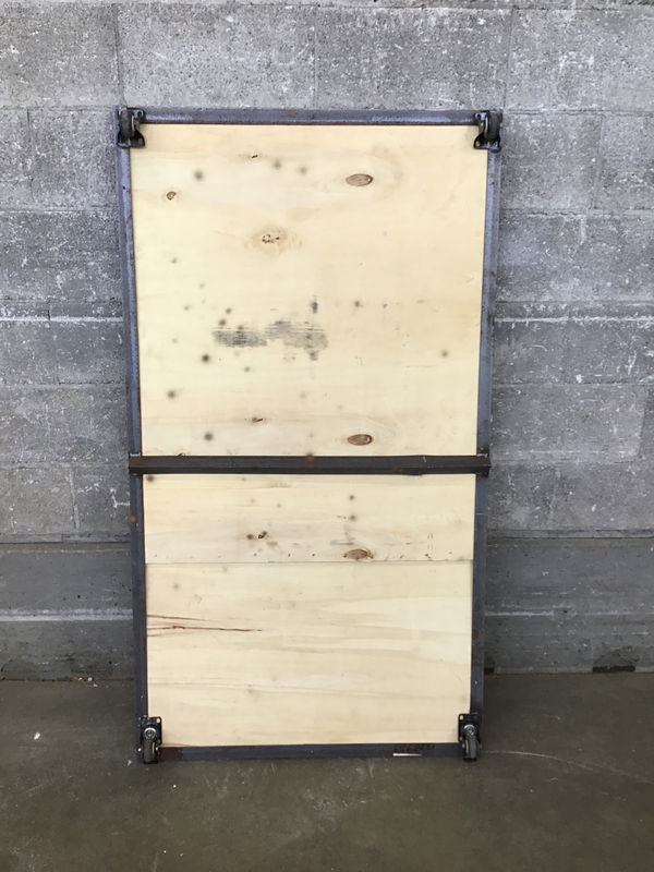 Metal Frame Low Cart with a couple of thin pieces of ply screwed in. You could totally replace it with more sturdy material.