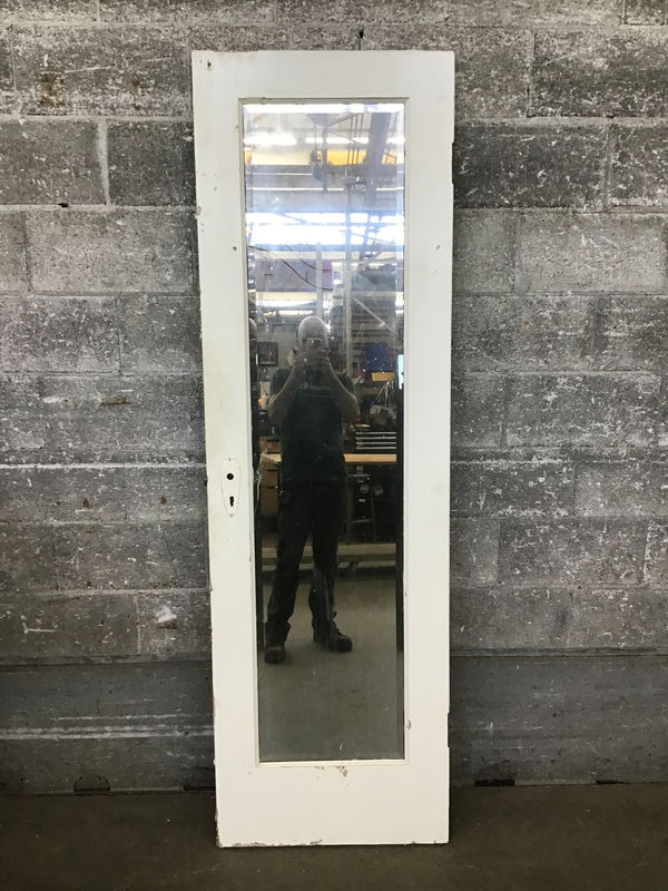 Single panel interior door with a mirror mounted on one side.