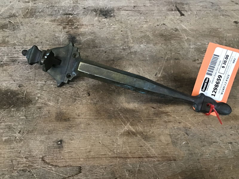 Just the handle set here (no mortise lockset, no interior side, no deadbolt), which is made of nice heavy brass and looks to have a natural finish.