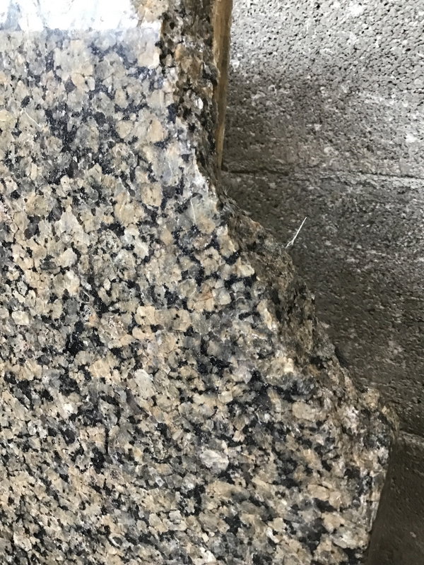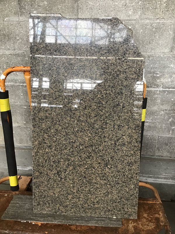 Granite countertop chunk with a ragged edge and a couple finished edges, it's a utility chunk for sure, usable area is reflected in measurement.