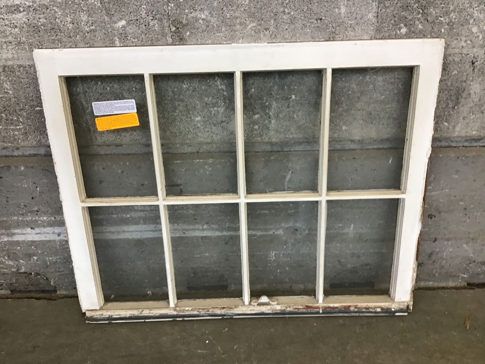 Vintage eight pane window sash with slightly wavy glass.