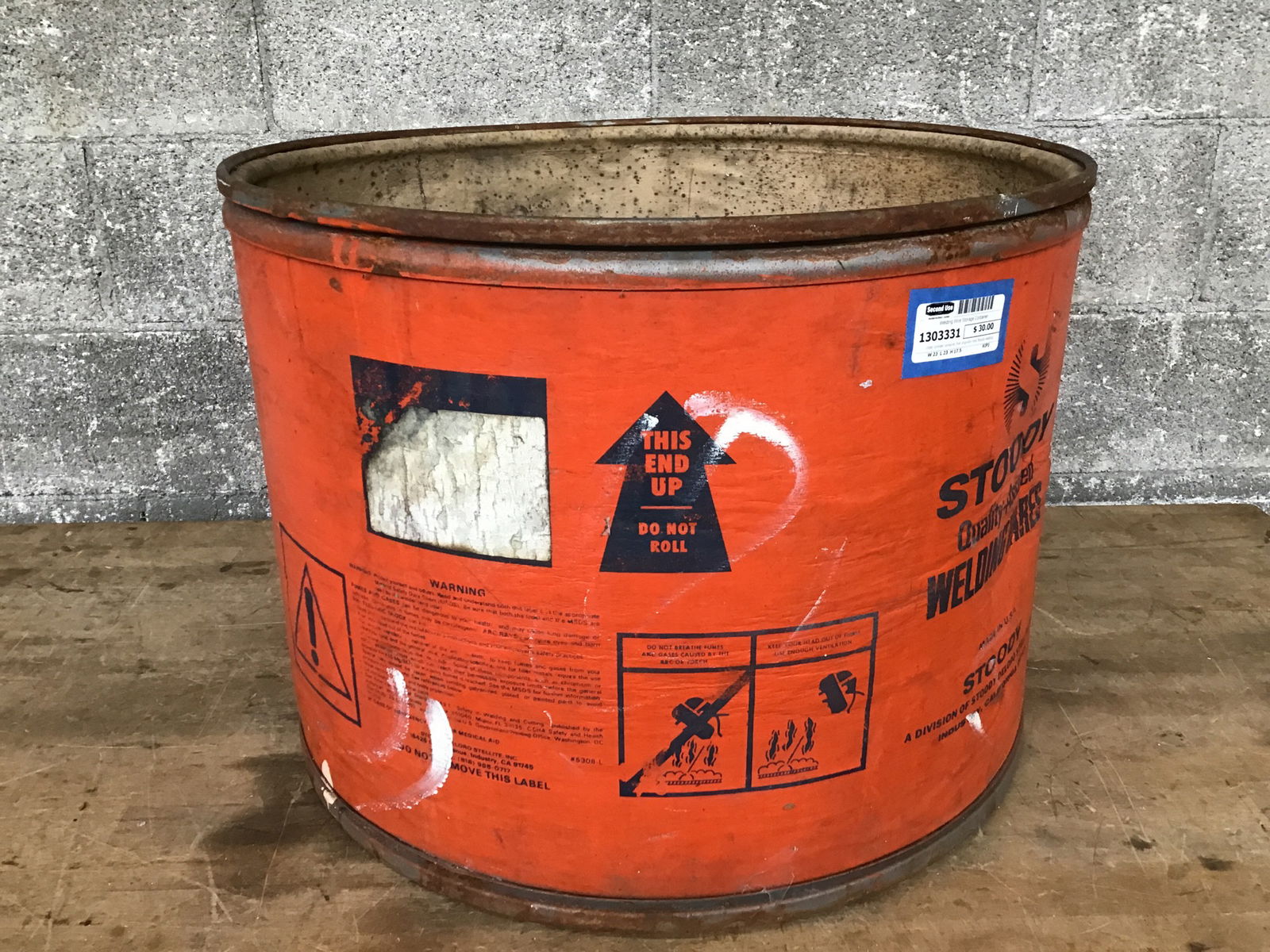 Older cylinder container that originally held Stoody welding wire. Now it's ready to hold whatever you'd like it to.