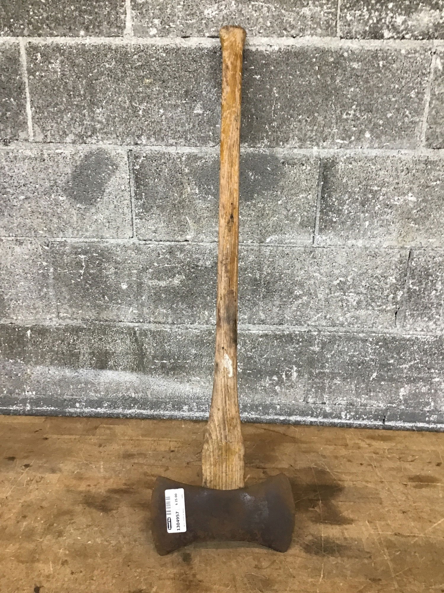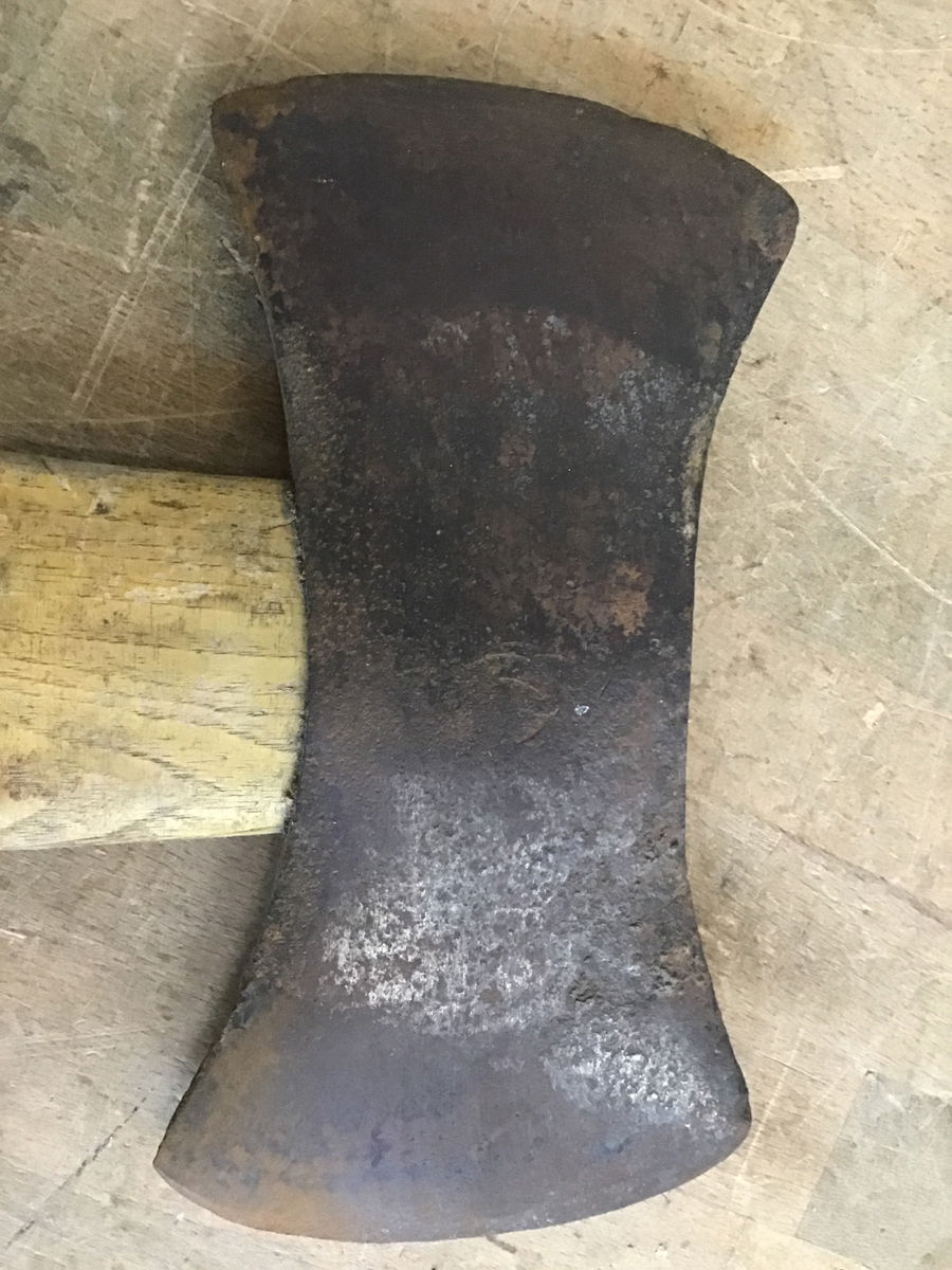I can't find a name on this double bit axe. Handle is in decent shape, but is not completely seated in the eye.