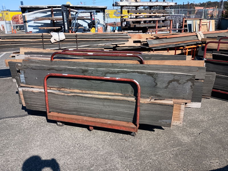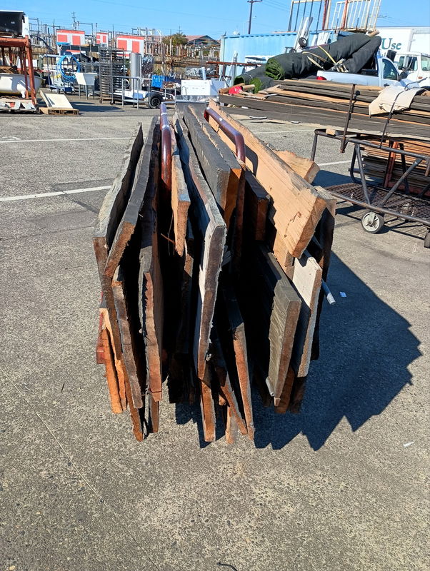 If you're ready for a wall or two of your project to make a statement, this lot of hand split, horizontal siding might be just the thing. This mostly clear cedar material is stained black on one side and unfinished on the other. It was salvaged by our Salvage Services crew. There's approximately 225 board feet of material in this lot. Most of the pieces are 8-11" wide, but there are a couple narrower ones in there too. We just couldn't see leaving any if this material , so if it looked like it might be useful we grabbed it. If you install like traditional horizontal siding, your square footage will depend on your reveals. Lengths are anywhere from 8-9'. Thickness varies quite a bit, from nothing to 3/4" on the narrow side to up to 1 1/2" on the thick side.