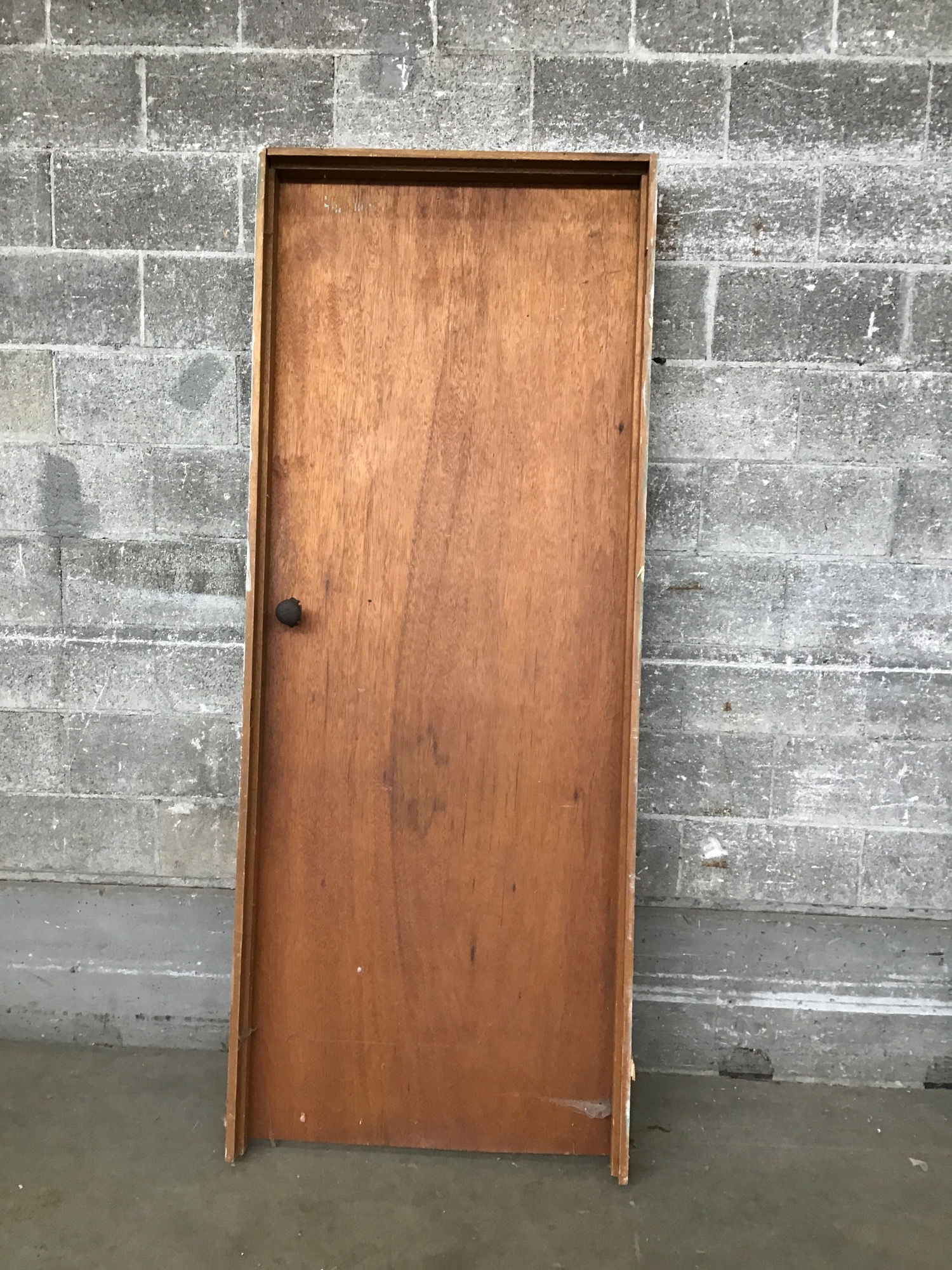 Hollow core interior pre-hung door with mahogany veneer.
