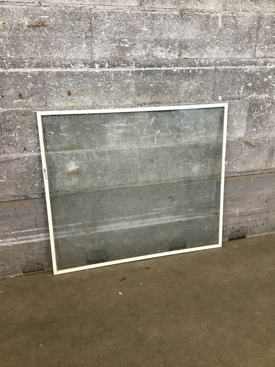 Aluminum-framed single-pane storm window perfect for a shed or greenhouse.