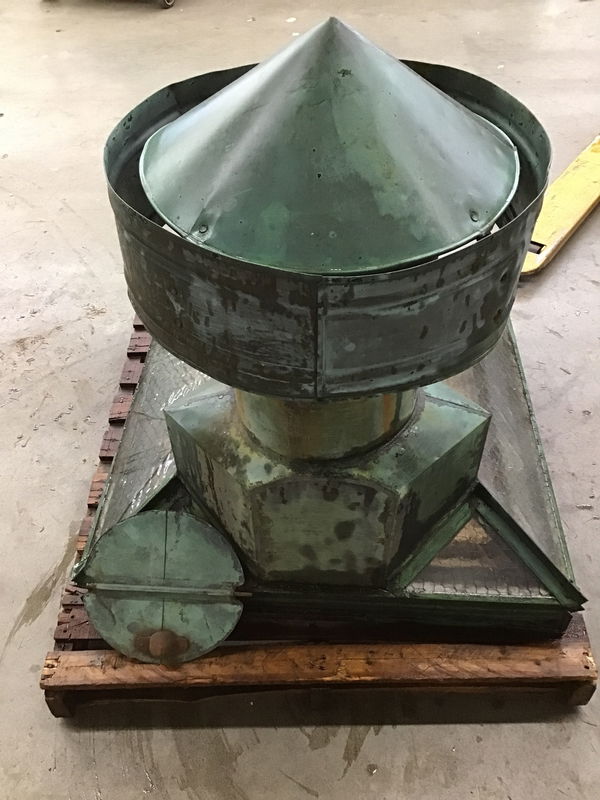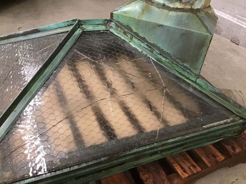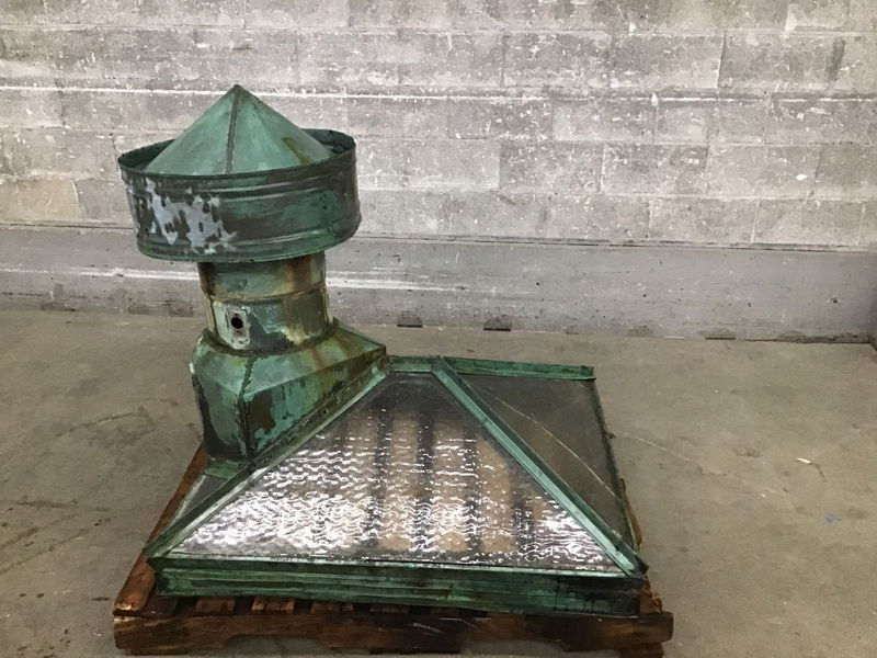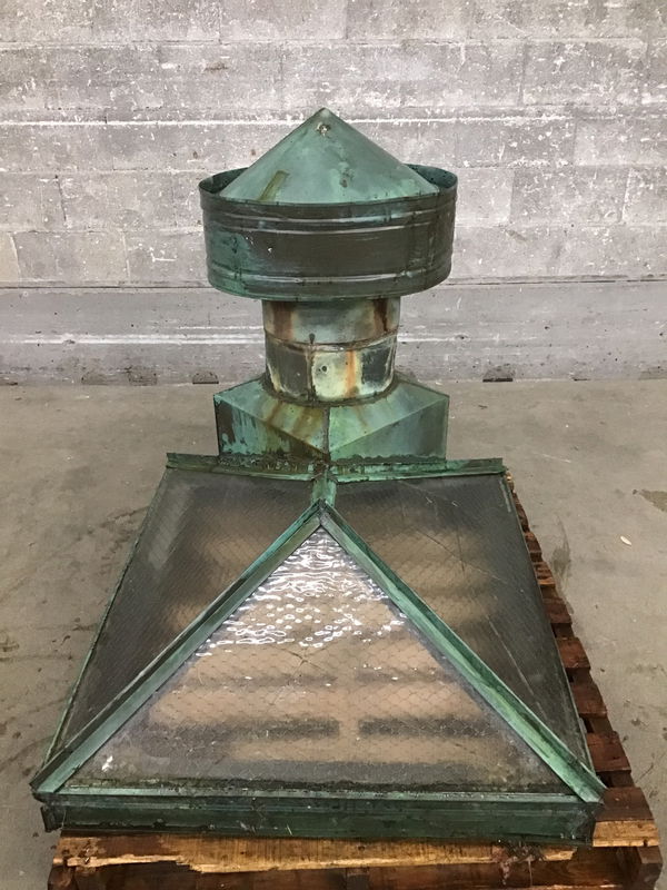 Sauna, greenhouse, sunroom, treehouse? The repurposing possibilities are endless for this incredible vintage industrial skylight/ cupola, constructed of single pane safety glass (some of which is cracked but still intact, thanks safety glass!) and solid copper. Base is 43" x 47". Let us know what you end up using it for by emailing into [email protected]!