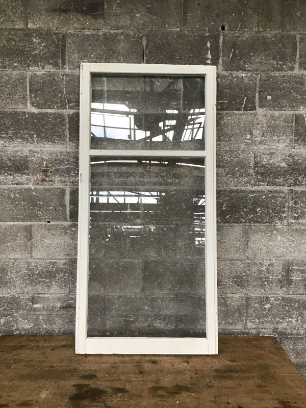 This exterior door has a pretty decent finish on one side but the other side has finish peeling off. The way I see it, half the work is done already! There are 6 lites at the top of the door and 3 panels beneath that.