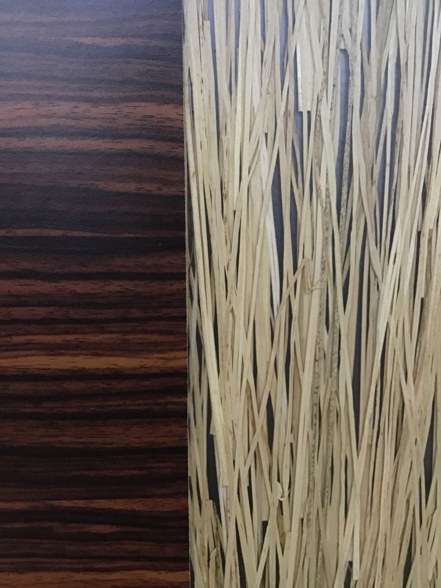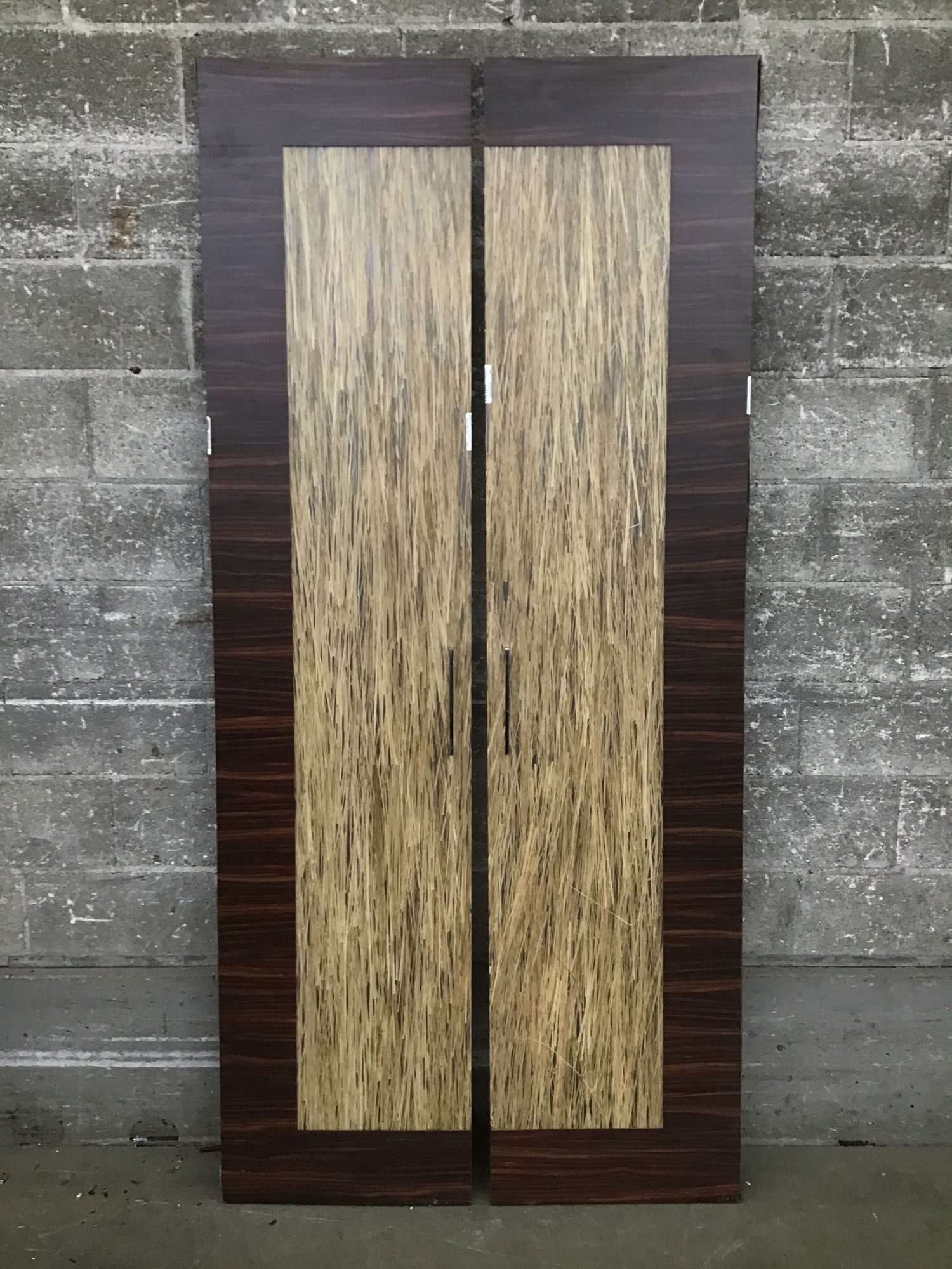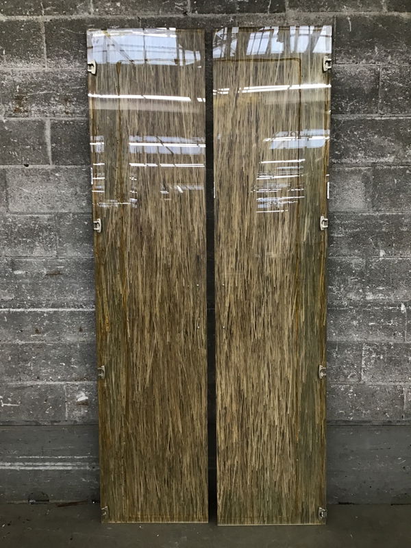 This mod look, wood grain P-Lam face over Lumicor (or a like material) cabinet door was formerly used in a salon setting--probably from a broom or storage closet. Could be repurposed into a decorative wall panel or remove the plastic laminate face to just have some Lumicor panels to work with. Width listed is for one of the two doors in the pair.