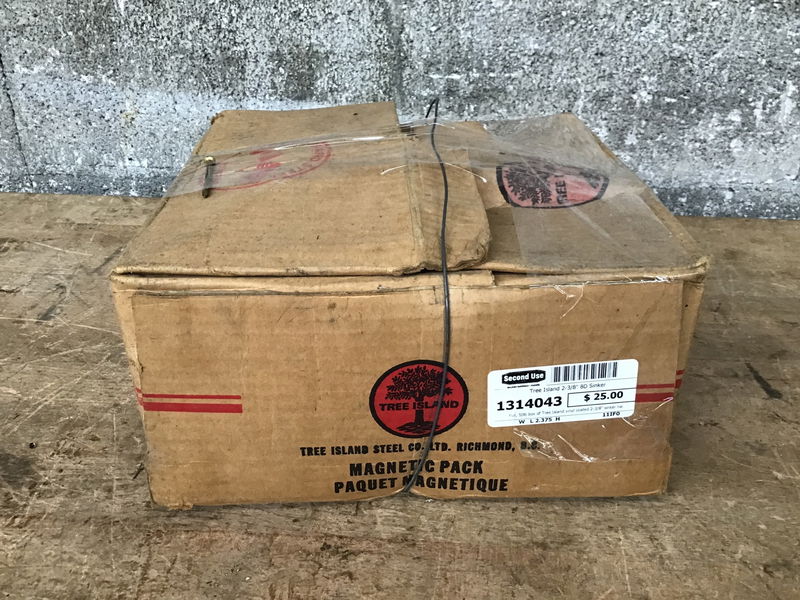 Full, 50lb box of Tree Island vinyl coated 2-3/8" sinker nails.