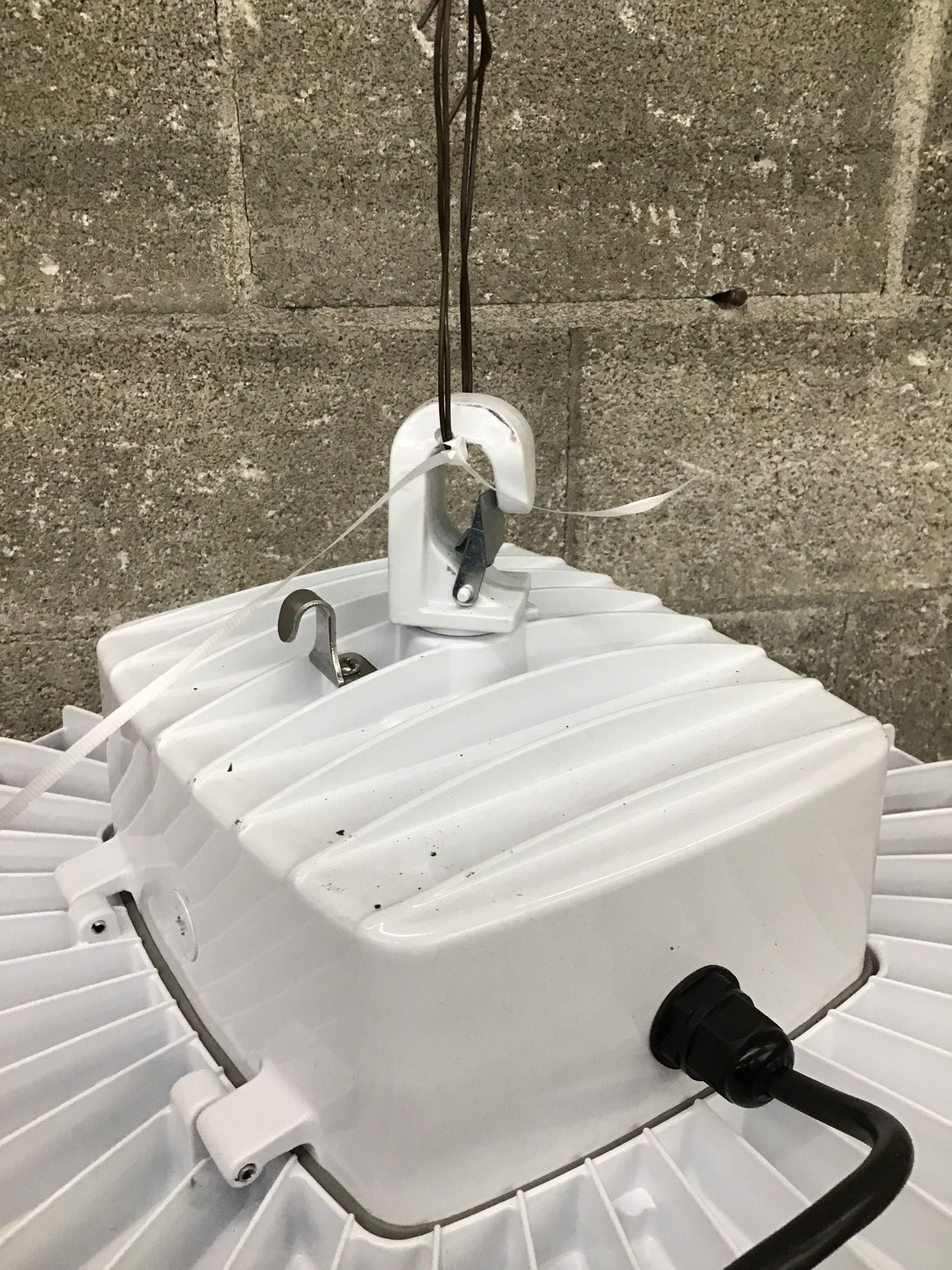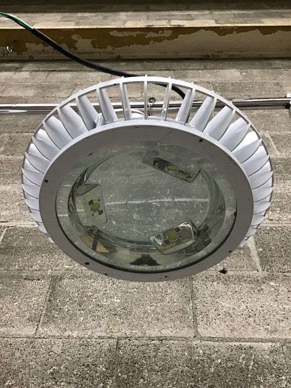 Massively bright and easy to install (runs on 120V) RAB 'BAYLED78' industrial grade shop light. Tested in house and is very functional.