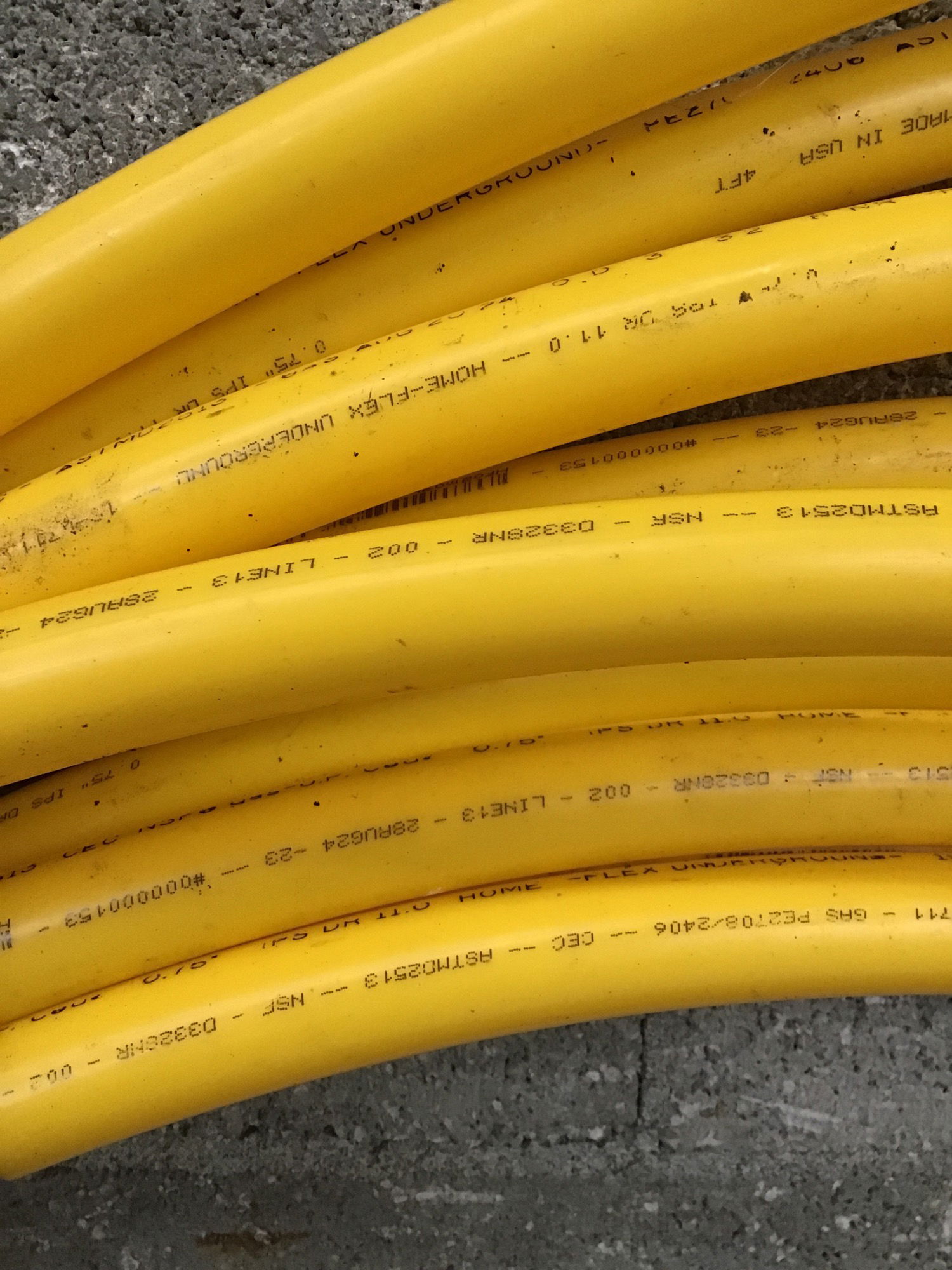 Home-Flex underground 3/4" IPS poly gas pipe (SDR11). Looks to be a little under 30'.