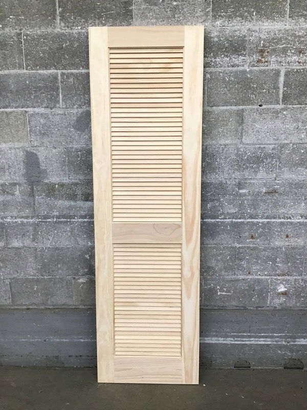 Undrilled, unfinished radiata pine louvered door. Item may have cosmetic damage. Photo may be representational.
